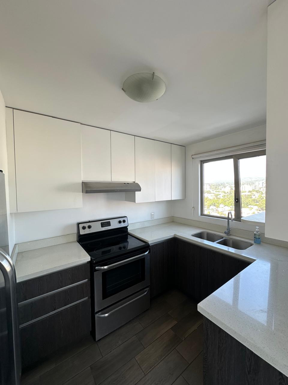 Vista espectacular hacia la ciudad, Área 138.9 m², Sala con bista, comedor, cocina con gabinetes, medio baño de visitas, 2 habitaciones secundarias con closet y baño compartido, 1 Haitación principal walking closet y baños, Línea blanca incluida Pet friendly (1 mascota permitida), 2 parqueos individuales, Balcón + Terraza privada, iluminacion natural.