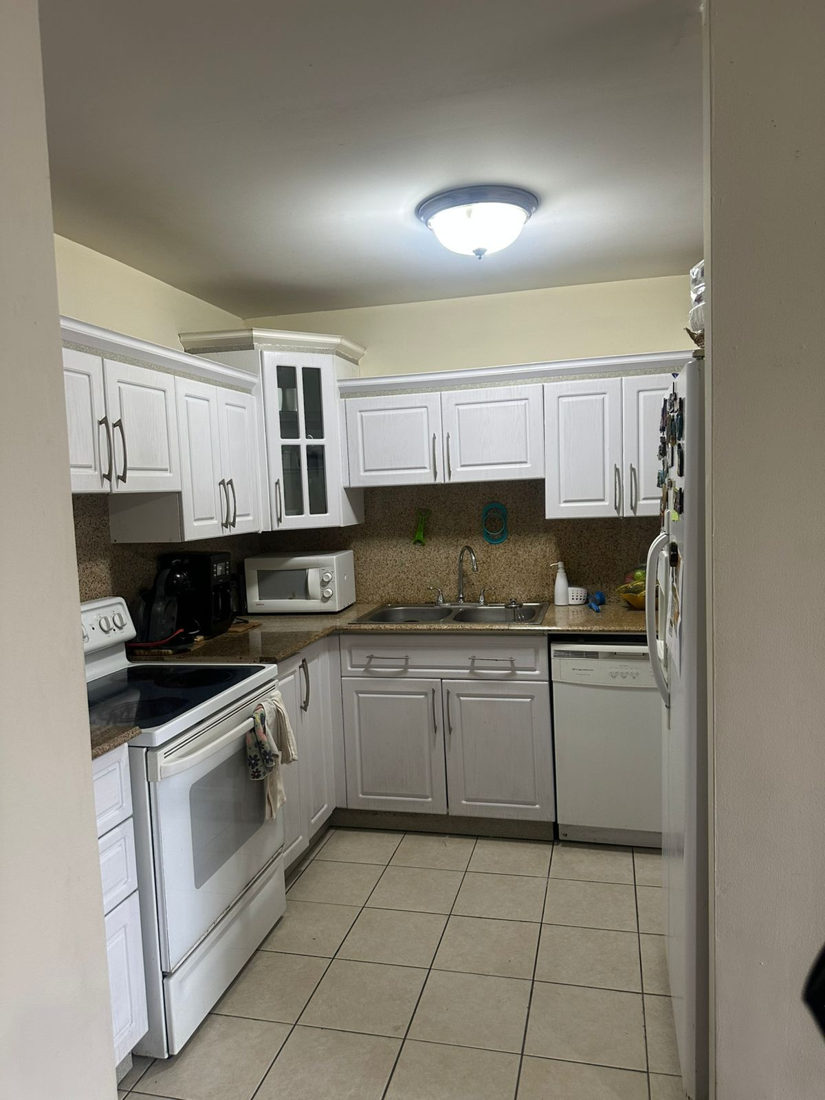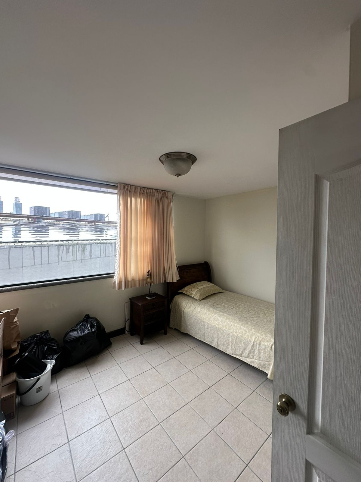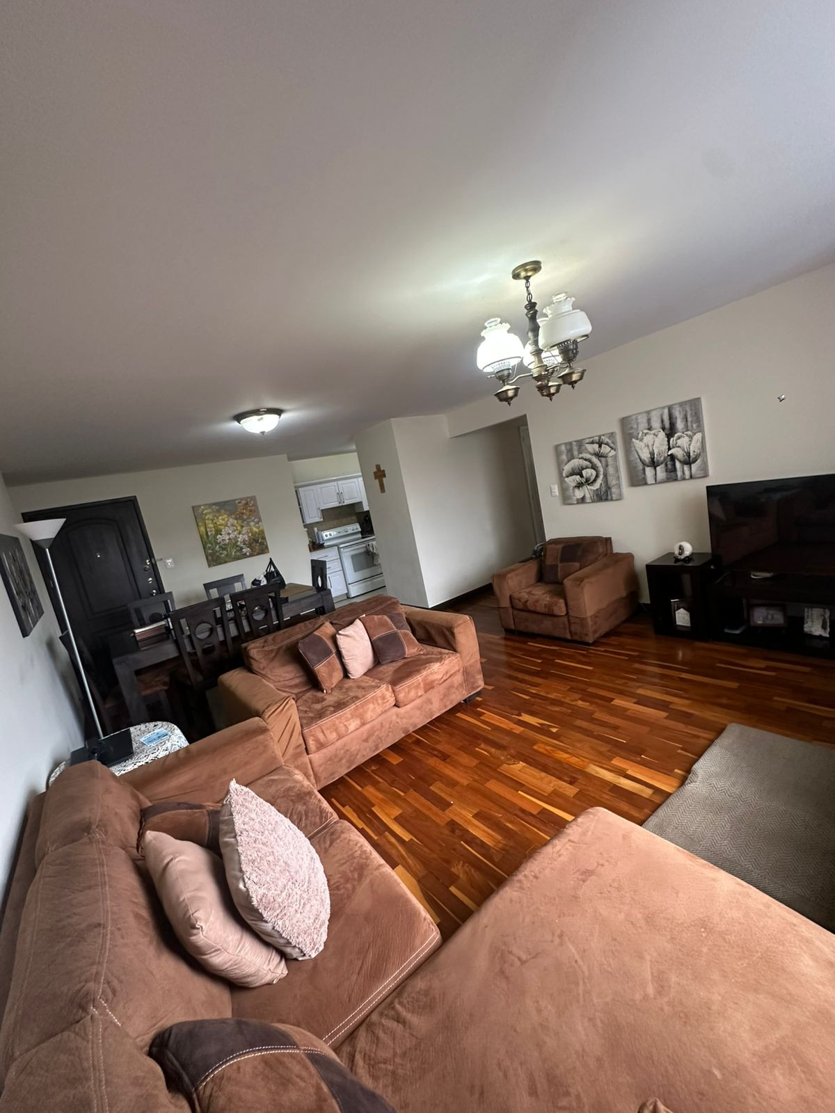Apartamento de aproximadamente 95 m² que cuenta con sala principal, comedor y cocina equipada con gabinetes aéreos y terrestres con top de granito. Incluye línea blanca en cocina y lavandería, habitación principal con tina, walk-in closet y gabinetes de baño, closet de blancos y un baño secundario completo con gabinetes. También dispone de una habitación secundaria, área de lavandería con puerta y acabados como piso de madera, zócalo de madera y gabinetes de cocina. El apartamento cuenta con 2 parqueos y acceso a salón social.