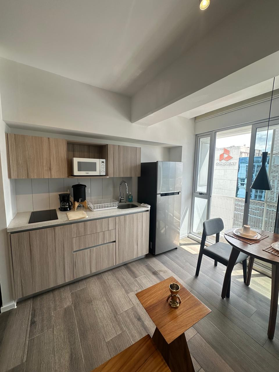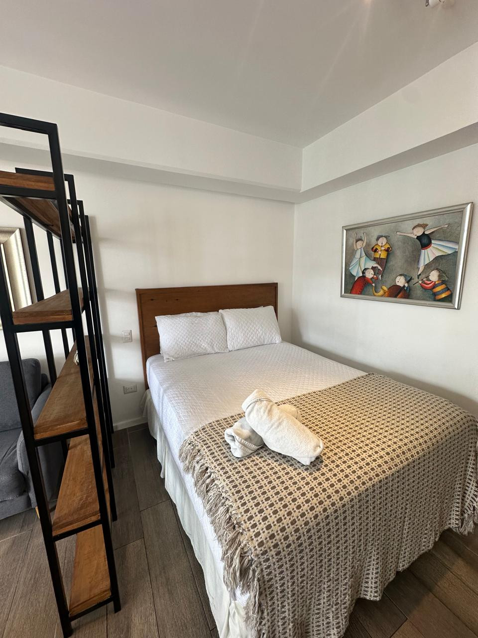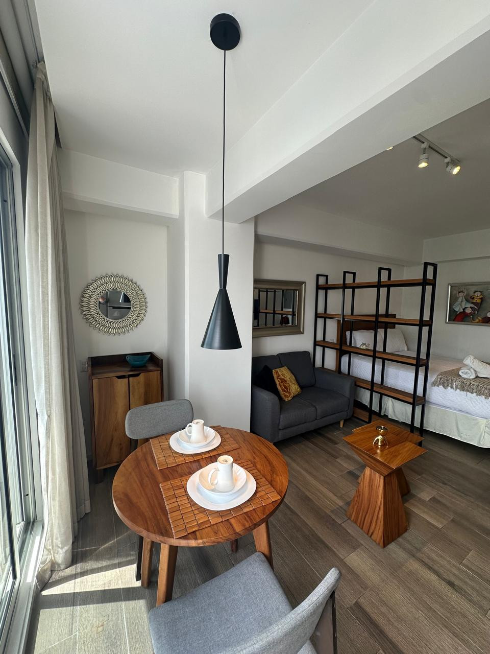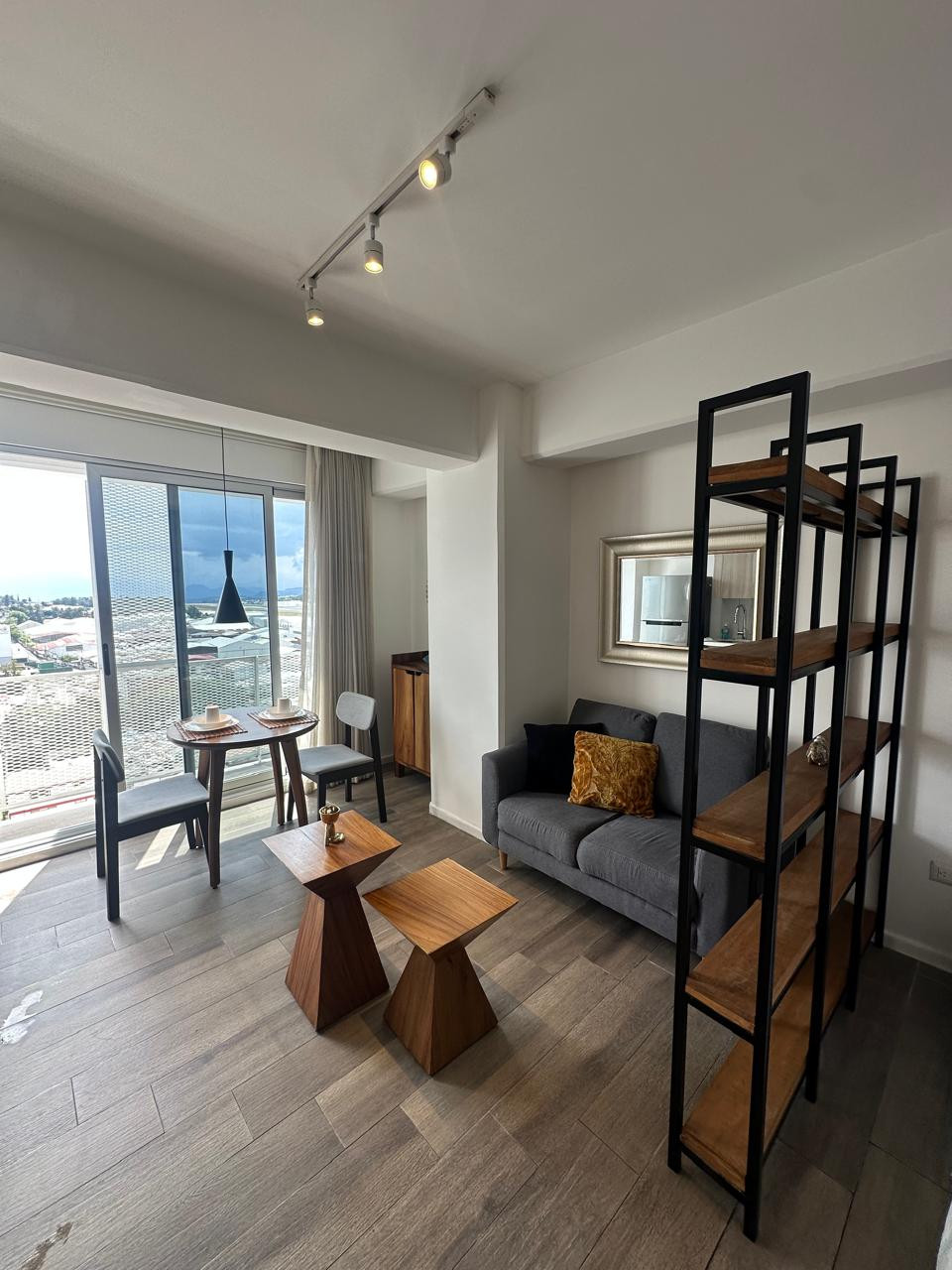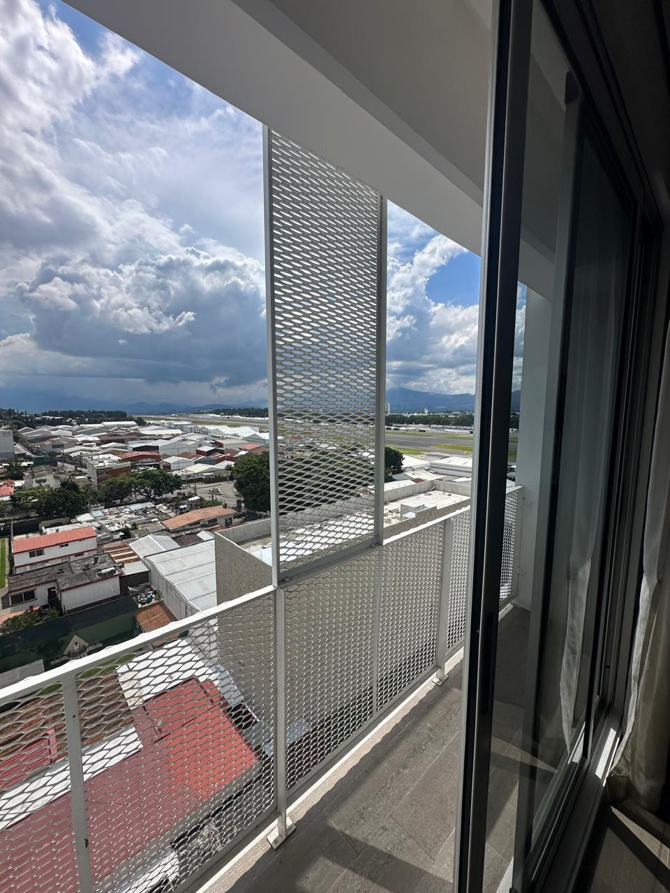 Apartamento tipo estudio de 35 m², amueblado y con acabados modernos. El edificio cuenta con área de lavandería y amenidades como jacuzzi, business center, mirador con vista a los aviones y área de juegos. Renta mensual Q6,500 con mantenimiento incluido. No se aceptan mascotas.