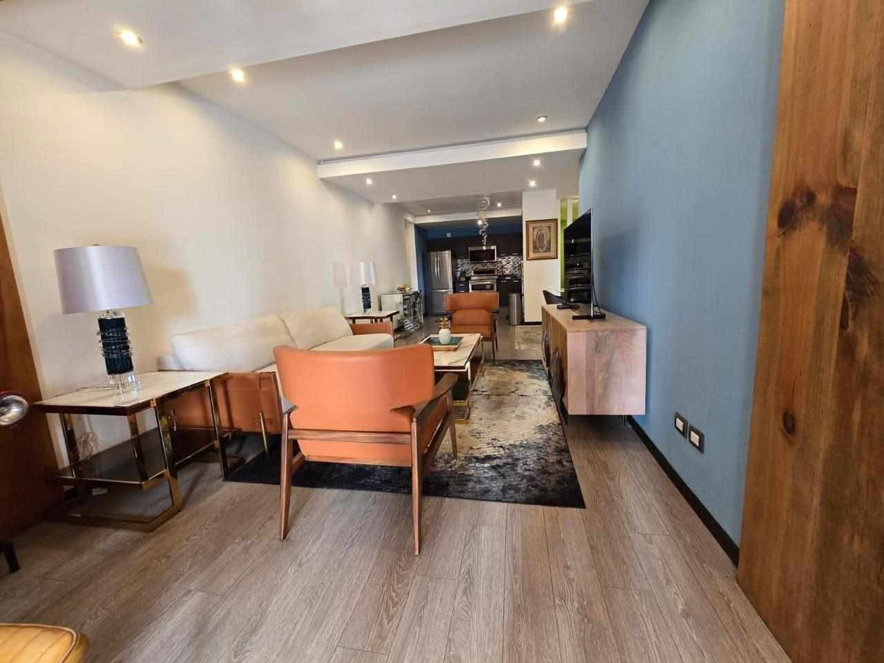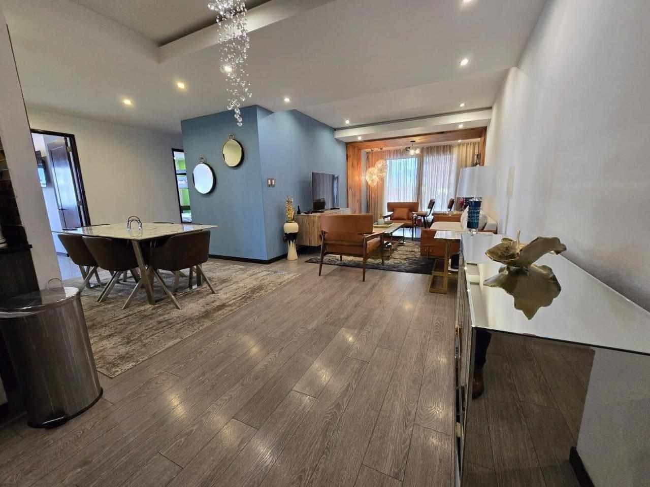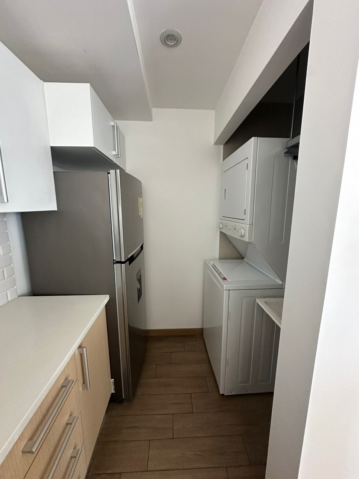 diseño moderno, cocina con top de cuarzo, piso cerámico imitación madera y zócalo de madera en todo el espacio, brindando una estética cálida y sofisticada. Dispone de línea blanca completa, desayunador.