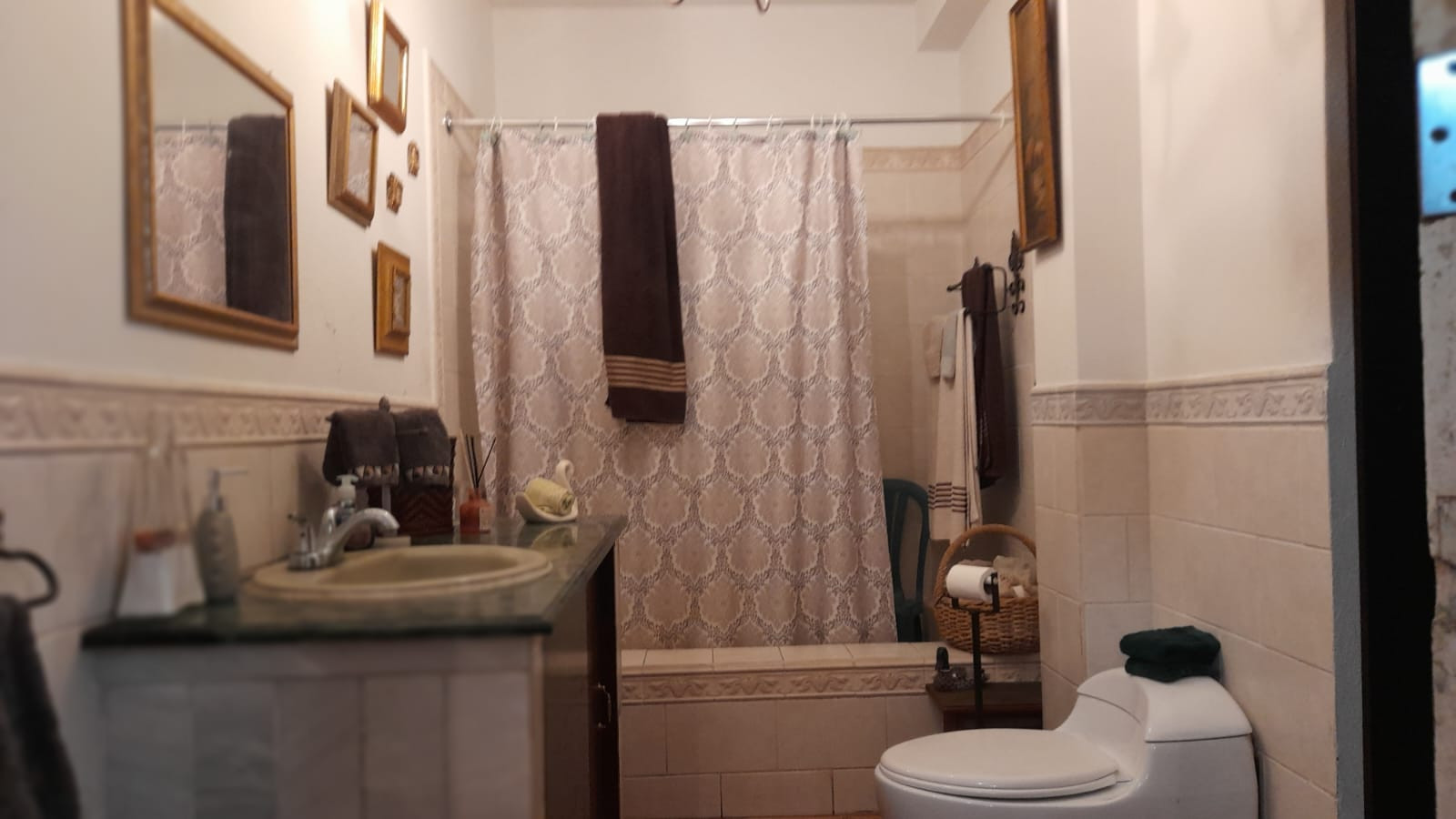 Area parqueo, Sala, amplia, patio interno con fuente artesanal clasica, habitacion amplia con baño propio y tina, comedor, cocina amplia con gabinetes, area de lavanderia.